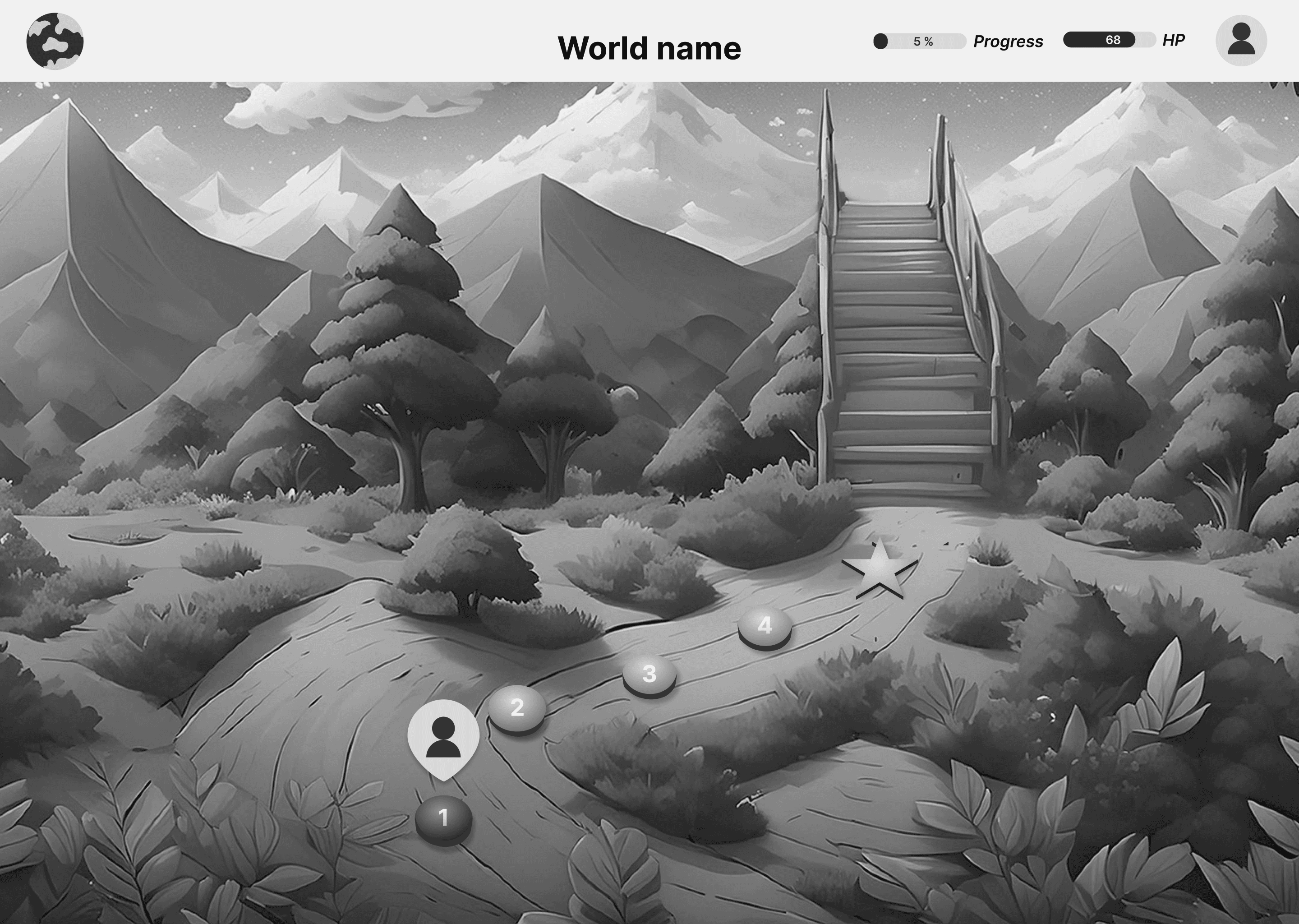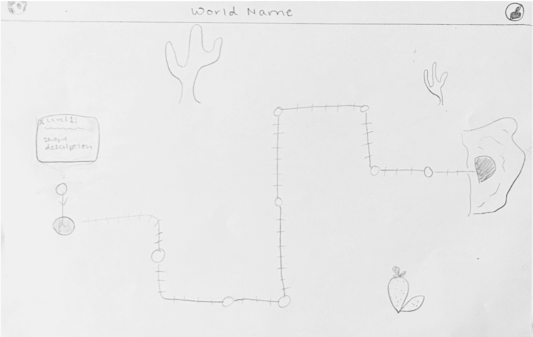 The feedback we received was that navigating the world map was intuitive, the level map was hard to navigate as most participants were unable to figure out how to switch between levels, participants felt the level dots should be labeled not just while hovering, and there needed a line connecting the level dots so they could follow along a path.