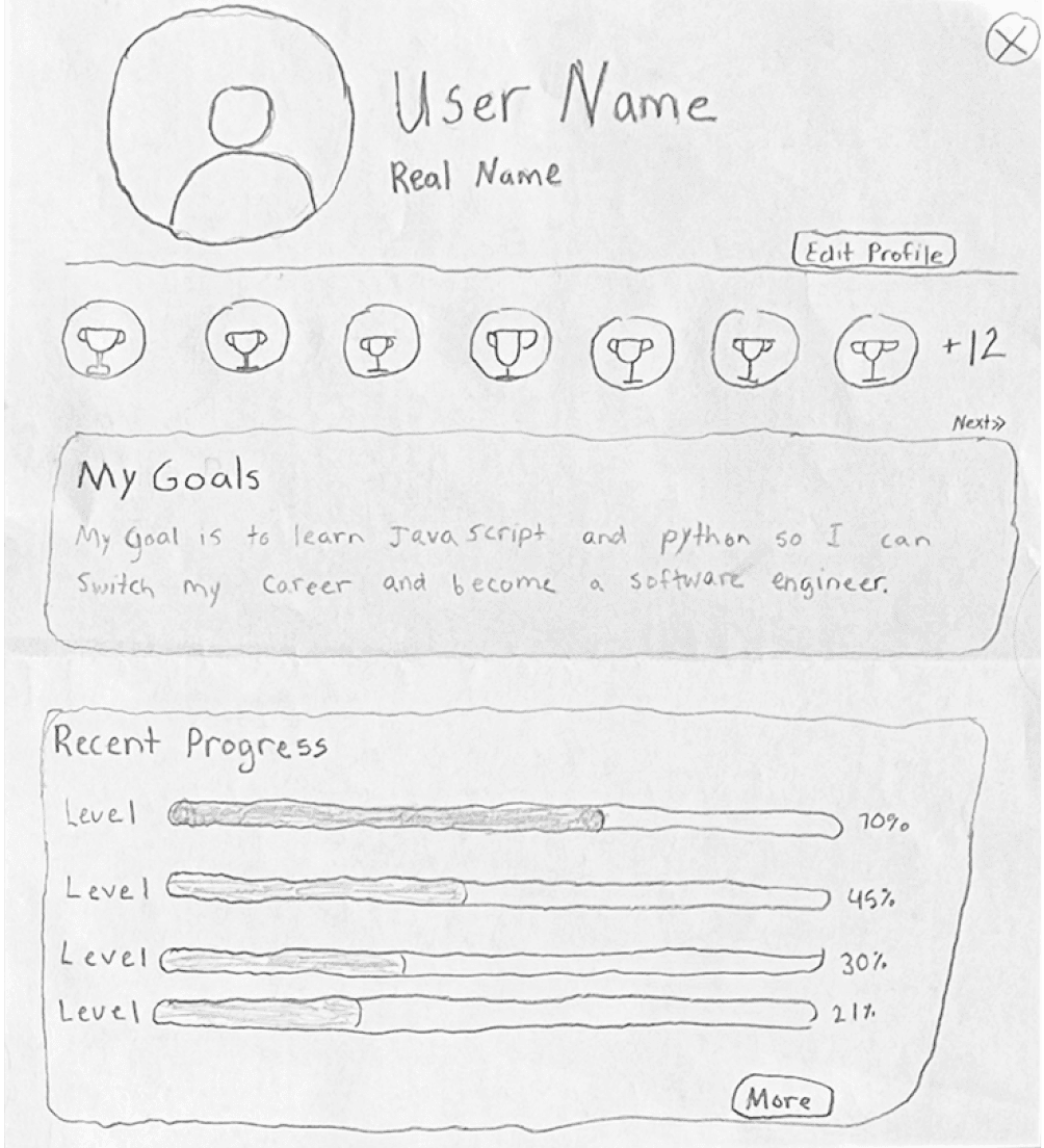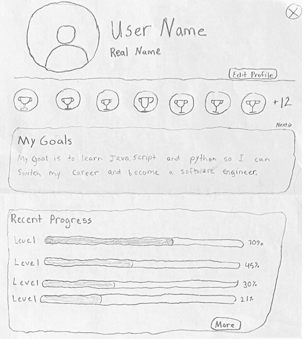 The most common feedback we got from participants regarding the profile included problems navigating between badges, having completed lessons being shown under recent progress, and not being able to identify their spot on the leaderboard.